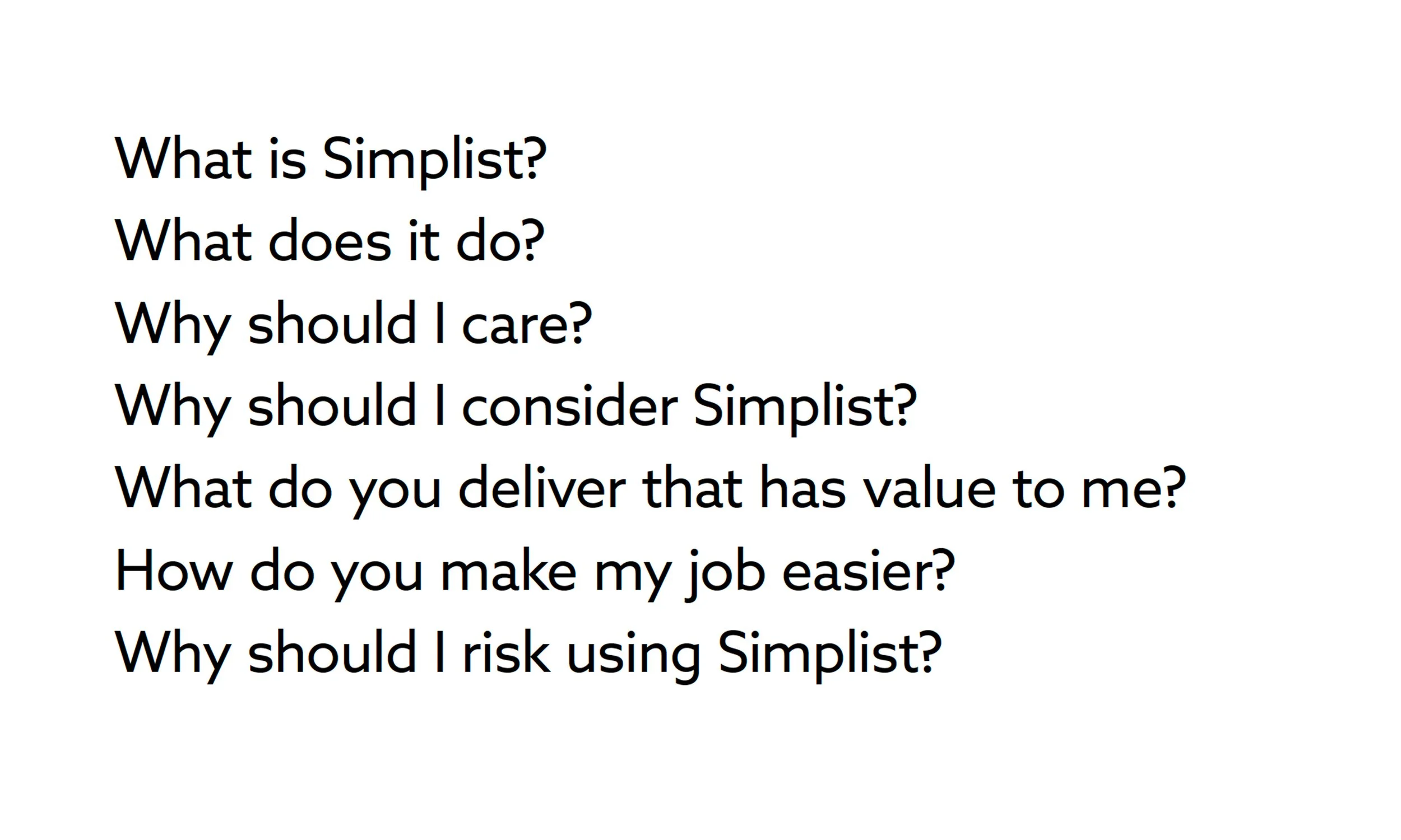 In order to strategize the brand evolution I synthesized data and research from customer interviews and client workshops. How do we position Simplist®?