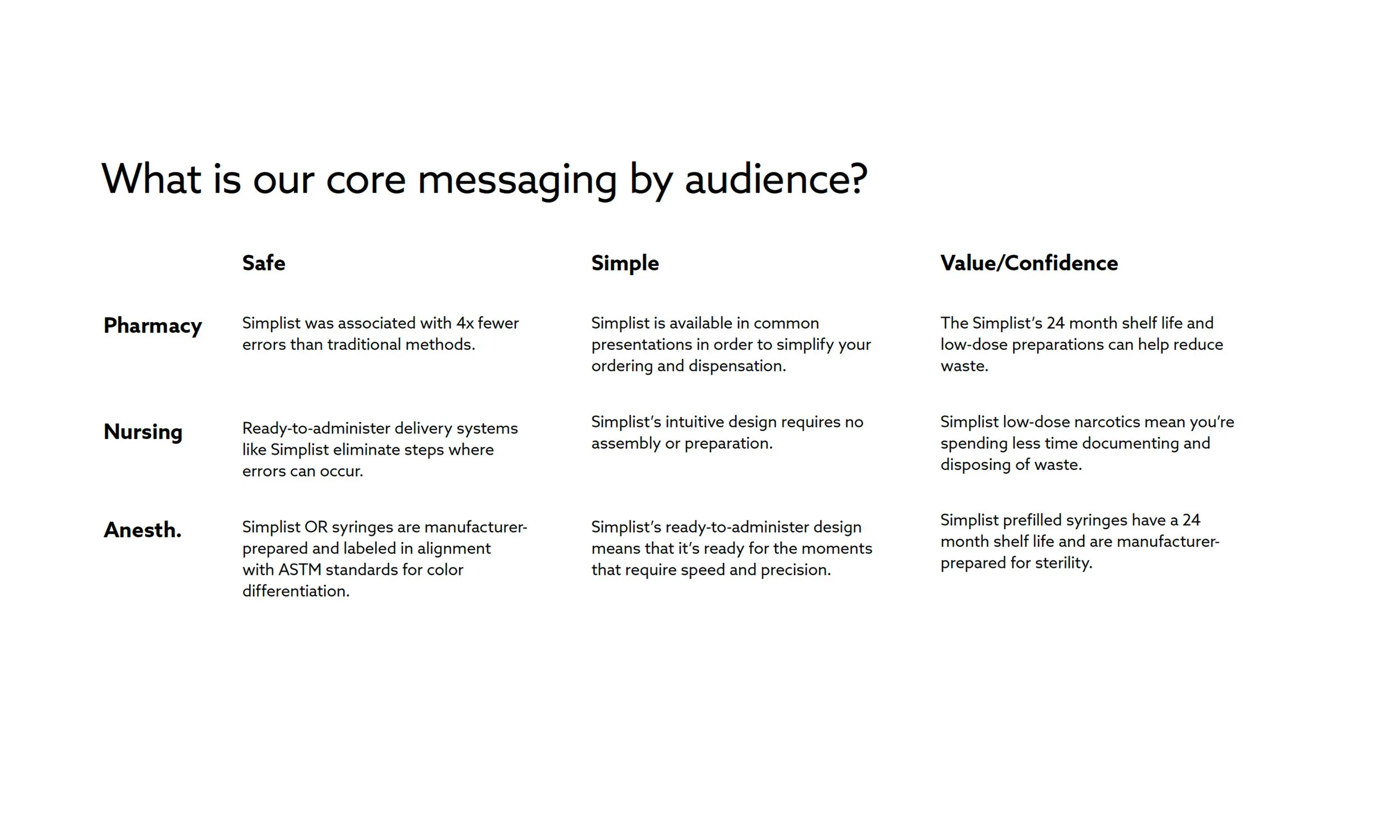 The goal is to position Simplist® as a trusted partner in quality healthcare and a leader in safe injectable medication practices. The website will play a central role by reinforcing the brand message, demonstrating the commitment to safety, and helping reduce preparation and administration errors through clear, evidence-based communication.