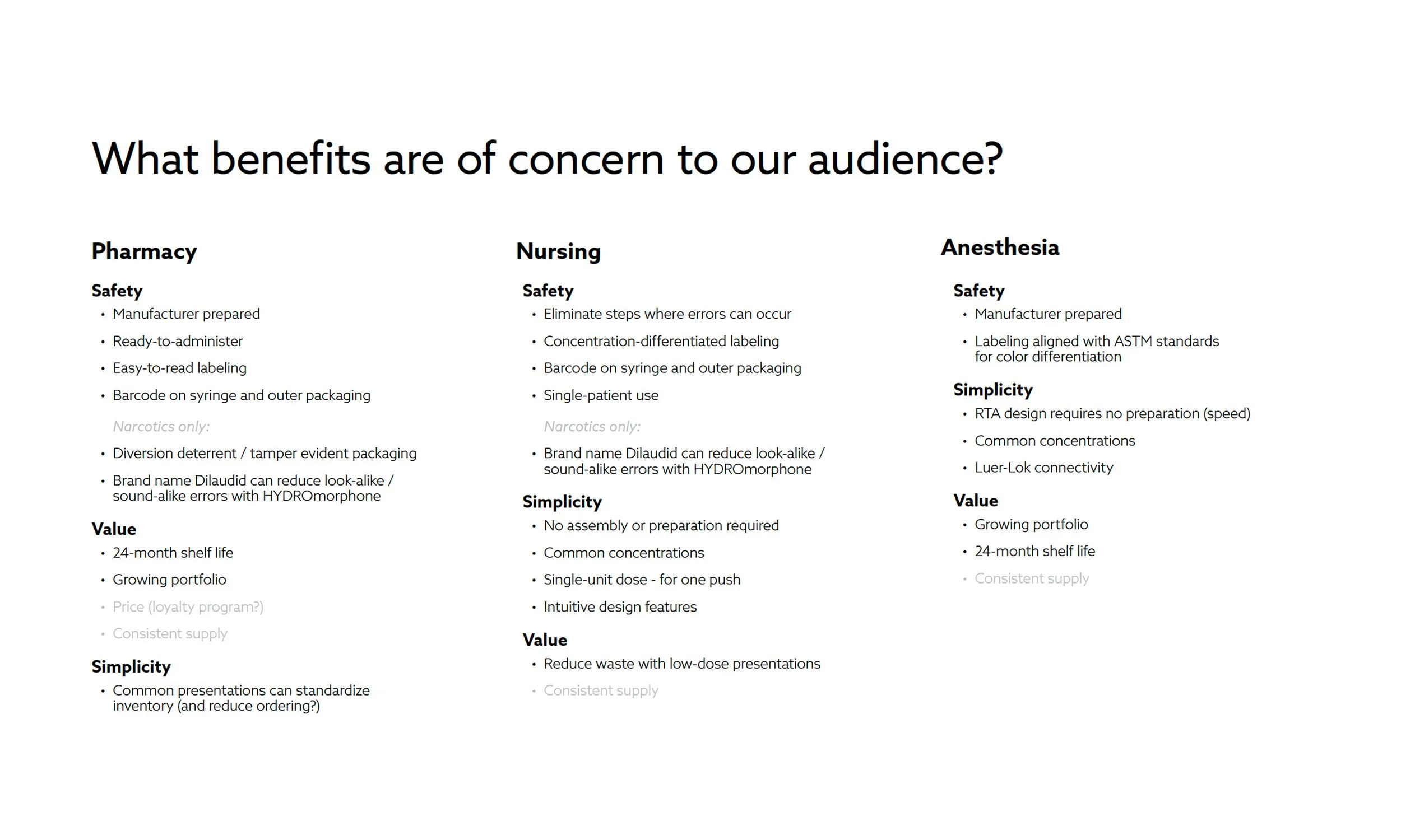 The existing website failed to effectively engage its three primary audiences (Nurses, Pharmacists, and Anesthesiologists) because it lacked tailored content, clear messaging, and intuitive user experiences. As a result, it did not deliver meaningful value, leaving critical stakeholders without the information and support they need to make confident decisions at the point of care.